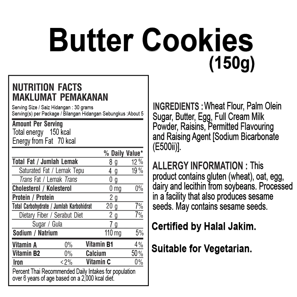 Enjoy the timeless charm of these butter cookies, crafted with a traditional shape that brings back nostalgic memories and adds a delightful crunch to every snack moment.