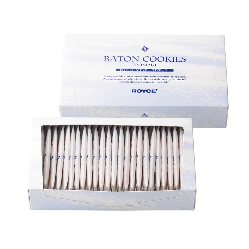 Crispy thin cookies crafted from an exquisite ensemble of Hokkaido Parmesan cheese and Gouda cheese are coated with mellow white chocolate for a salty sweet bite.